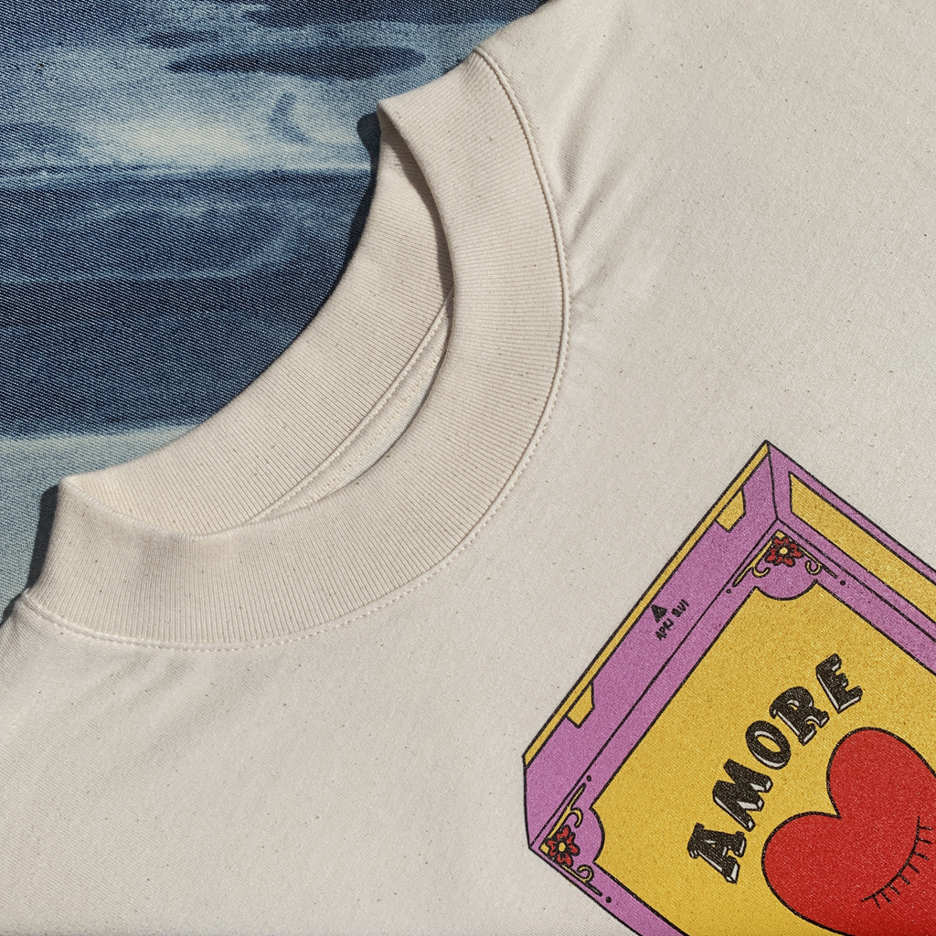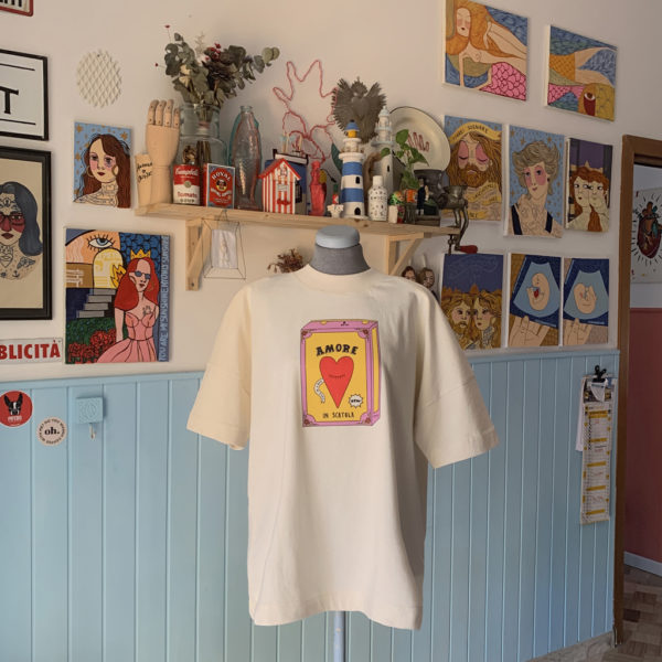 Il Maxi dress Amore in scatola nasce in un periodo particolare della nostra vita, in cui quantificare l’amore che portiamo dentro di noi diventa un gioco di sussulti al cuore e viaggi interspaziali. Ci piaceva l’idea di creare un prodotto che ci accompagnasse in tutte le fasi della vita adulta, un abito, una TShirt, un accessorio colorato